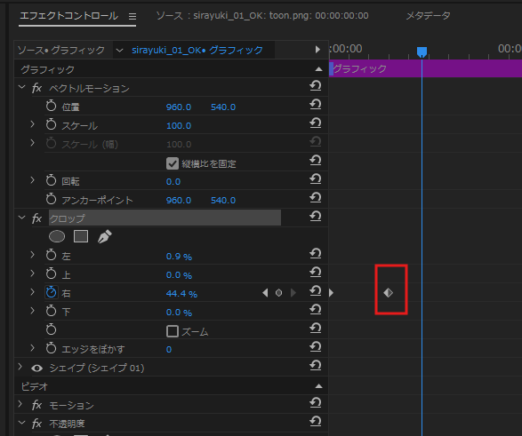 ②エフェクト【クロップ】を適用